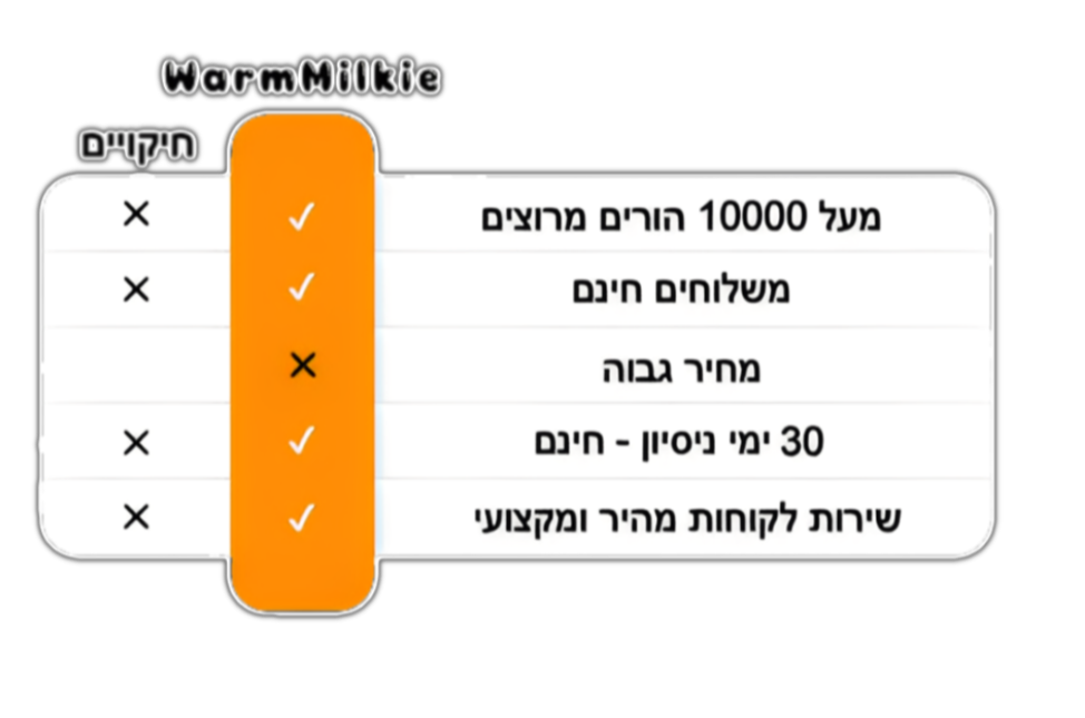 אצלנו ב-WarmMilkie מאמינים שלהיות הורה זה מספיק מאתגר – אז דאגנו להפוך את כל השאר לפשוט.