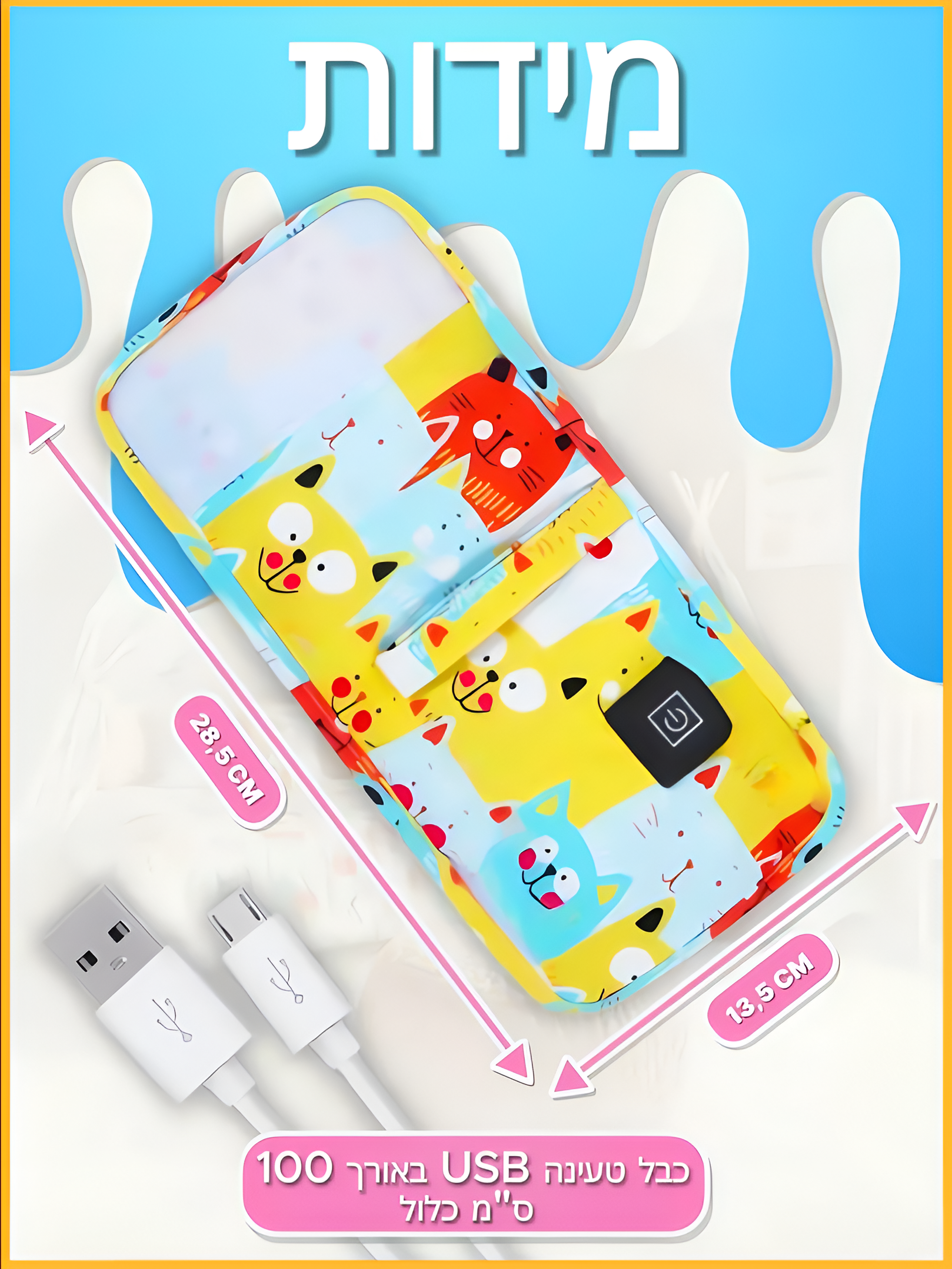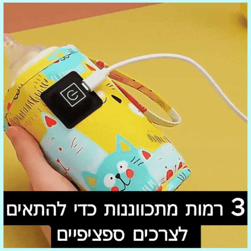 מעטפת חכמה שמתלבשת על כל בקבוק תינוק ומחממת אותו בעזרת כבל USB – בבית, ברכב או בטיול.